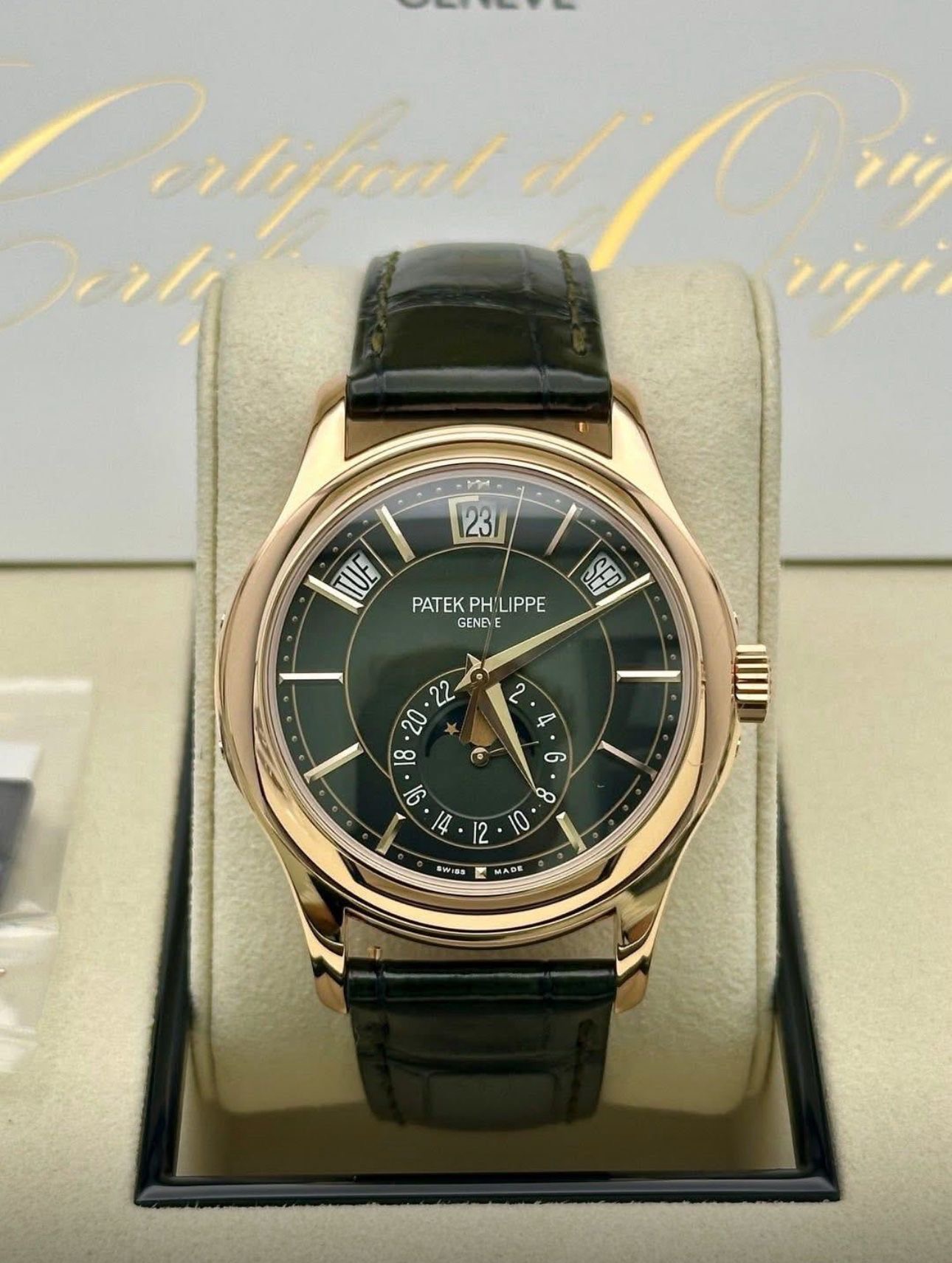 An Heirloom in Motion Some watches whisper prestige; others command it. The Patek Philippe 5205R-011 belongs to the latter—a symphony in rose gold and olive green... Read more.